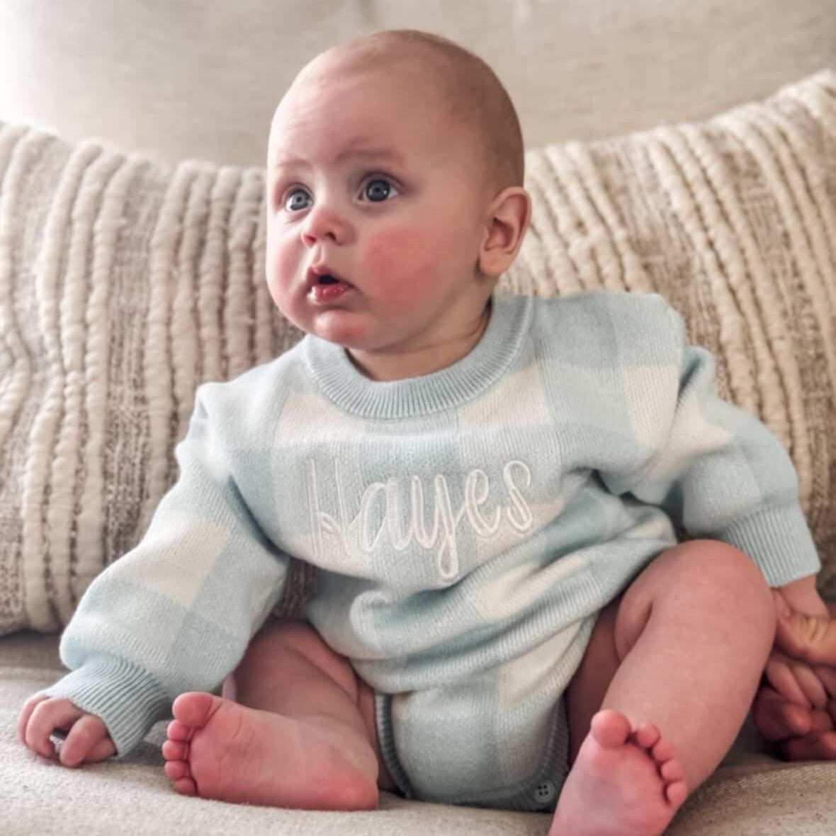 Each romper can be personalized with one or two names, embroidered in your choice of thread color and font, making it a meaningful keepsake for birth announcements, first photos, and baby’s earliest milestones.